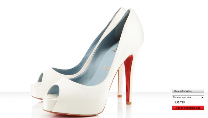1. Myslím, že nenajdete originál bílou botu Louboutina (s podpatkem) s černým lemováním, a troufám si tvrdit, že to ani v případě, kdy by kromě bílé byla na botě použita v menší míře i černá barva.