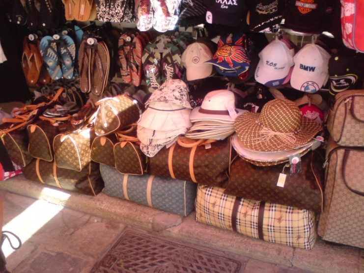 Ale LV mi je líto, fakt se tak brutálně padělá a ty kabelky jsou snad levnější, než všechny ostatní, ptž je má kdejaká socka...Takže si říkám, že i kdybych na LV kabelku měla, tak si jí nikdy nekoupim, ptž by si stejně všichni mysleli, že je to fake, je to děsně rozšířené. Přidávám fotku z Řecka, kde jsme se vyloženě bavili tím, že jsme prolézali stánky s faky a hodnotili, který je nejzdařilejší