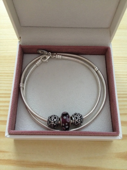Včera jsem v Pandoře byla založit nový náramek a také jsem chtěla zkusit kožený, ale když jsem ho zkusila na ruku, tak mě vůbec nezaujal, takže jsem opět skončila u stříbrného.