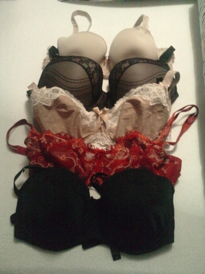 Červená a tělová s puntíkem jsou Lise Charmel, černá Wonderbra, ostatní si nezpomenu, ale dokupuju postupně, nejsem zastánce hromady prádla, které mi není.
