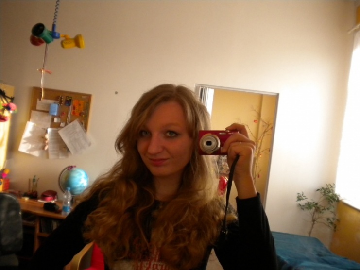Tak posilám taky fotečku. Celkem se mi moje vlasy líbí, když si s nima člověk pohraje, není to taková hrůza, ale vadí mi, že je mám takové jakoby krepaté. Asi by to chtělo nějaký přípravek na uhlazení...