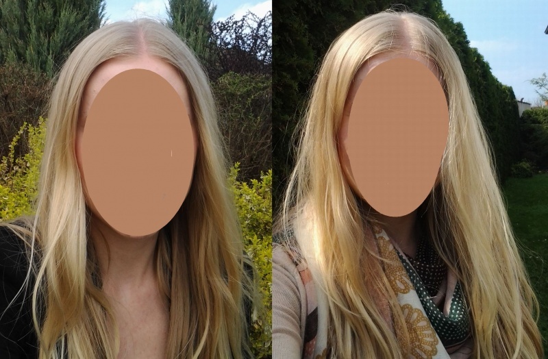 Vlasy nikdy v životě nebarvené, teď ale jsou prodloužené, takže moje jsou kratší (po ramena).