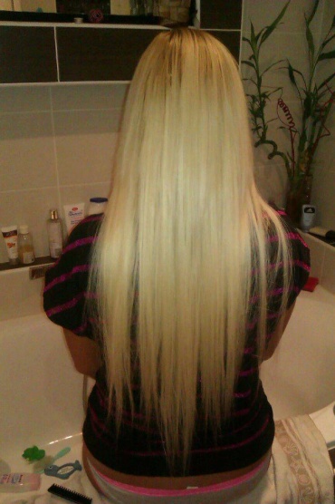 Taky přidávám pá fotek mnou prodloužených vlasů...východoevropy,150pramínků micro ring a obarvené