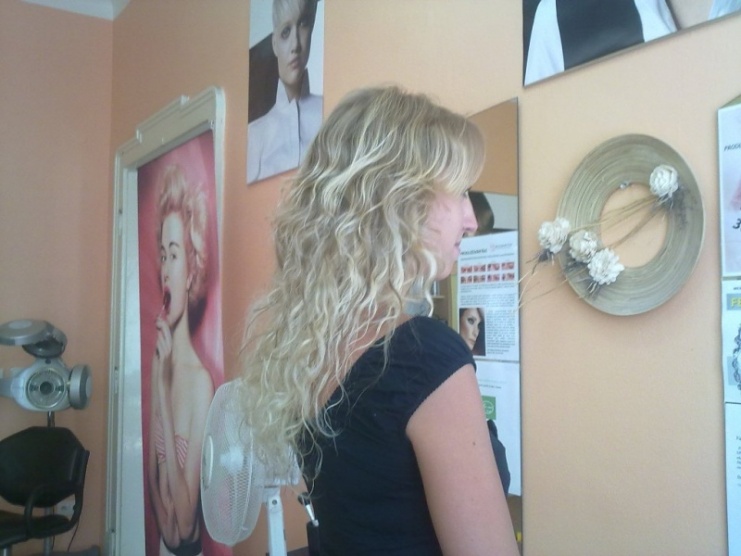 Nemám je takhle vlnité, mám je navlněné, ve skutečnosti jsou mírně vlnité....Doma jsem je už rozčesala a už to je rovnější