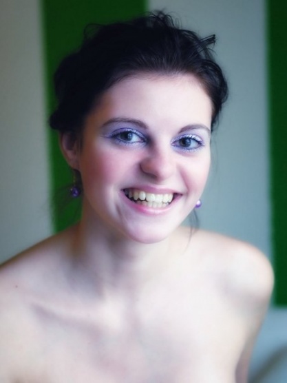 délka vlasů je asi k ramenou když je má rozpuštěný... jinak se vůbec nemalovala a oblíkala se staromódně, myslím že se mi povedlo jí aspoň trošku změnit