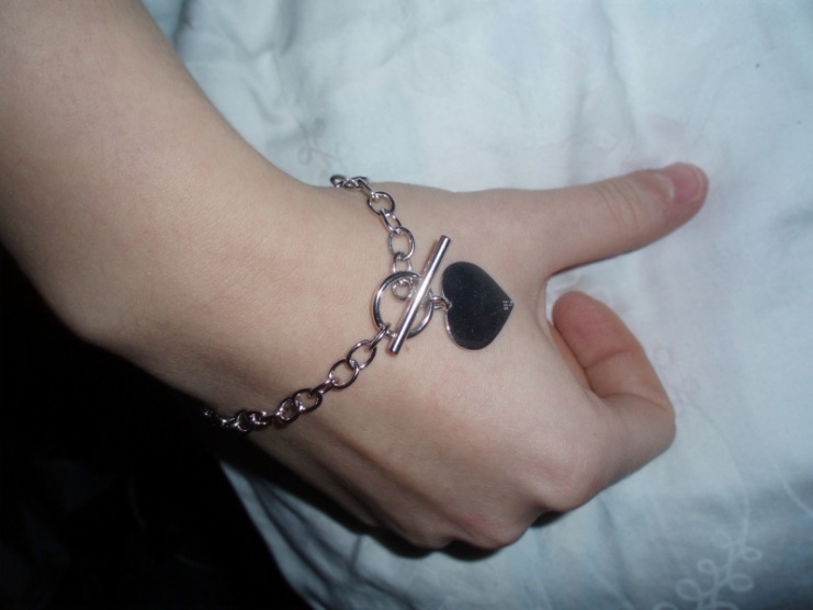 včerejší dárek. Focené narychlo. Mám z něj úžasnou radost, je to tedy klasický stříbrný "žebrák", na který si postupně budu dokupovat přívěsky. S americkým zapínáním jsem hledala dlouho...všude měli jen z alpaky nebo ch.oceli..tak jsem ráda, že jsm nalezla tento. Do srdíčka plánuji ještě nějakou rytinu