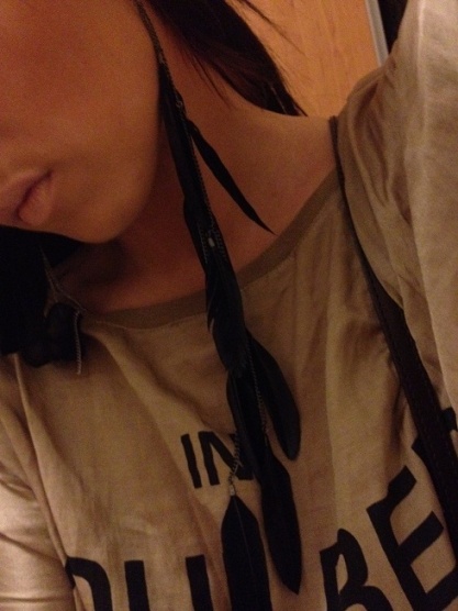 Náušnice s pírky, koupeno C&A. Jsou moooc dlouhé, tedy jen jedna, druhá je (úmyslně) o polovinu kratší. Jsou krásné.