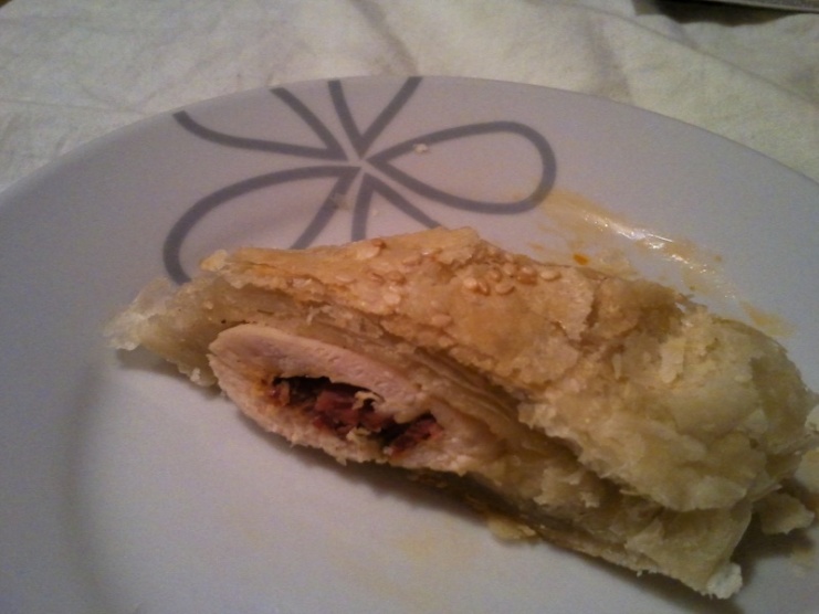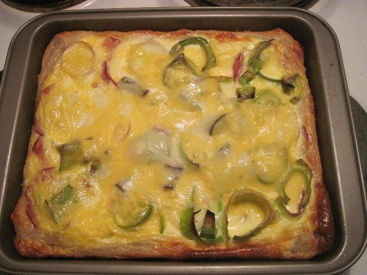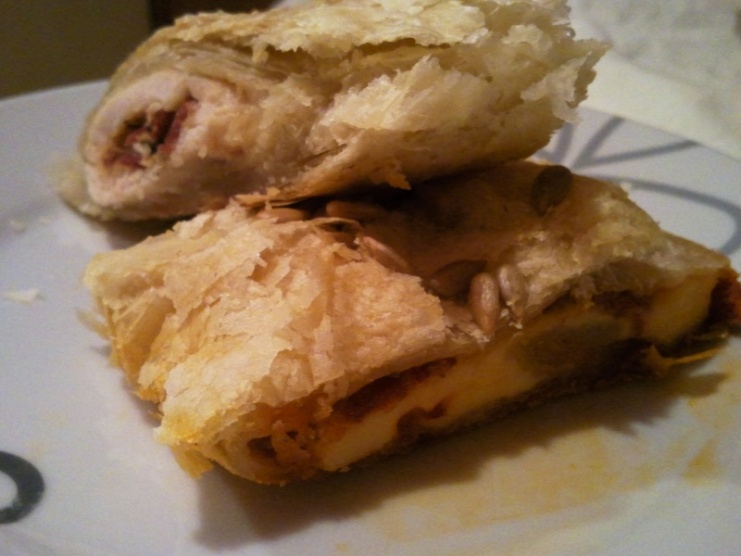 slan kol z listovho tsta se salmem, prkem, cibulkou, srem a smetanou