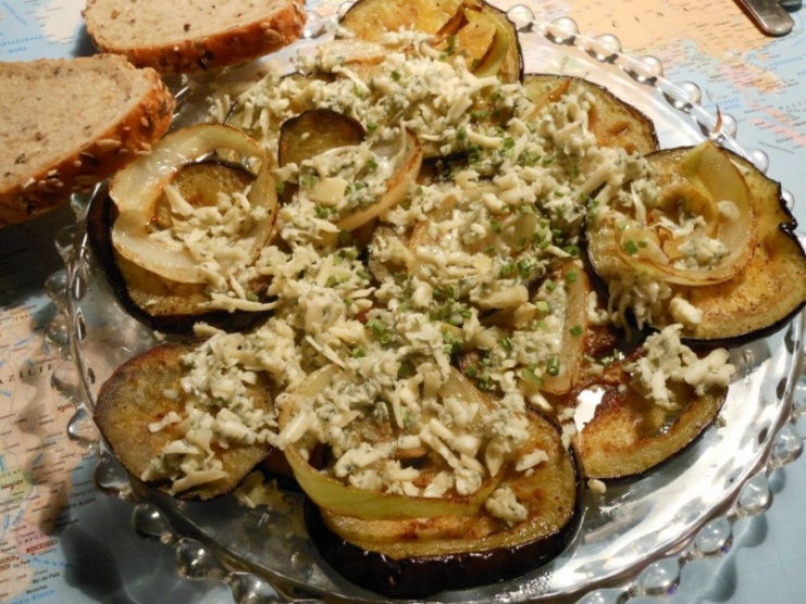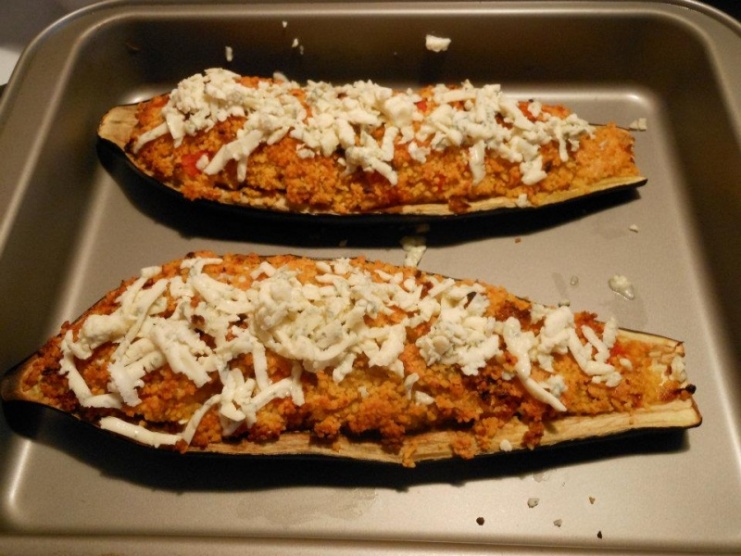 lilek plnn kuskusem s rajtky, cibulkou, esnekem a ve posypan nivou