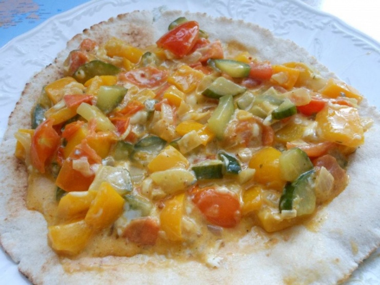 zelenina na chili a kari s roztavenou nivou v pita chlebu