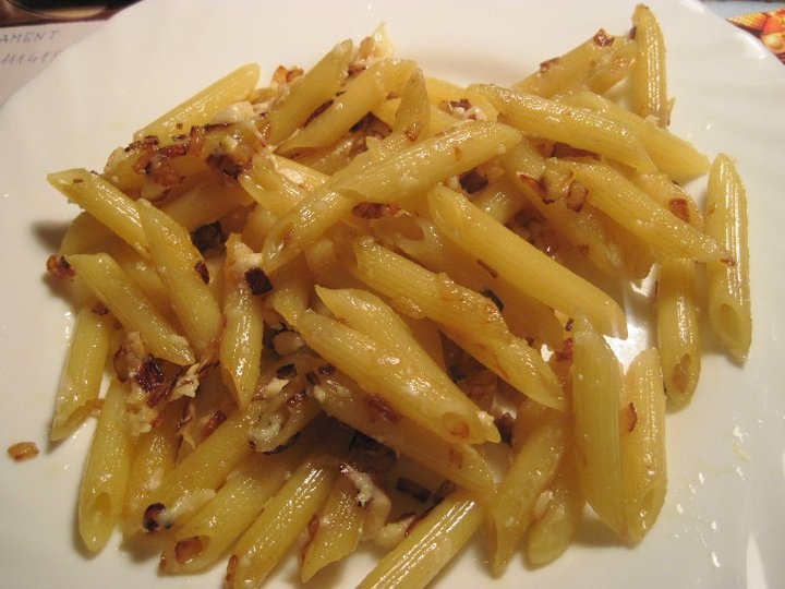 rychlovka - penne s cibulkou, olivovm olejem a parmaznem