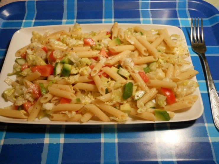 tstovinov salt s rajtky, ledovm saltem a avokdem + domc olivov zlivka + koen