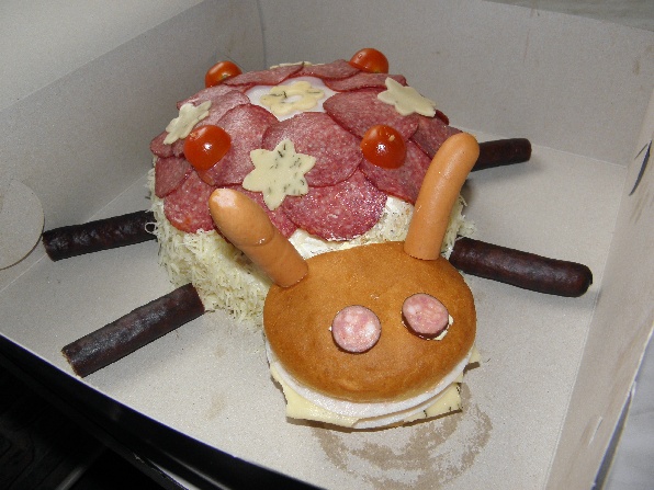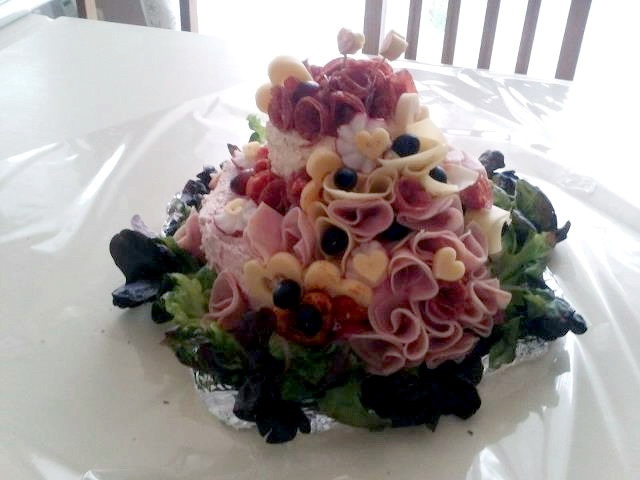 Slaný dort. Byl potřeba, jelikož slavili narozeniny 4 chlapi