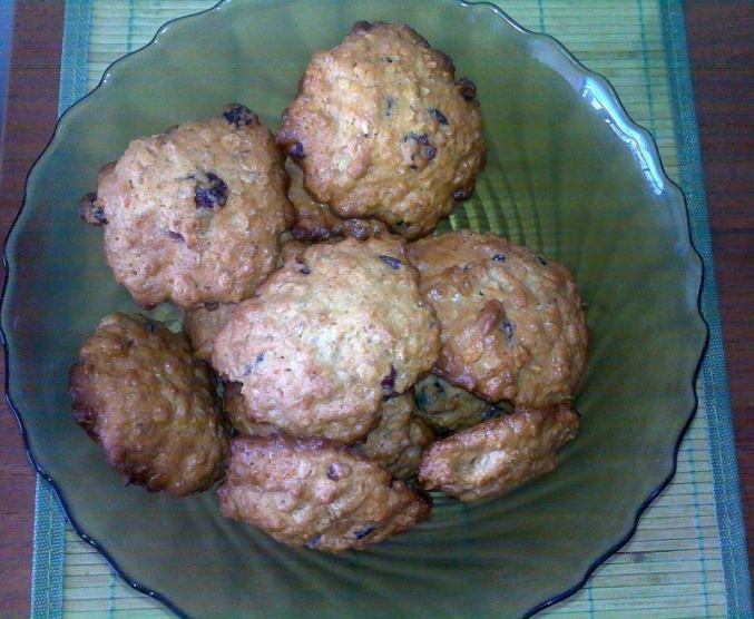 vločky, hl.mouka, cukr, máslo, vejce, kokos, brusinky, med, zakys. smetana, prášek do pečiva, jedlá soda