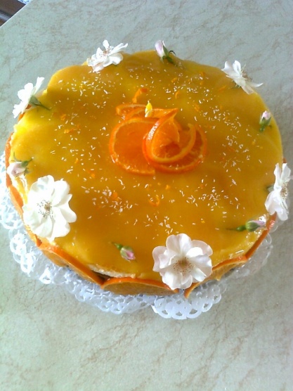 Svěží lehký pomerančovo-mandarinkový dortík s tvarohovým krémem na čoko korpusu
