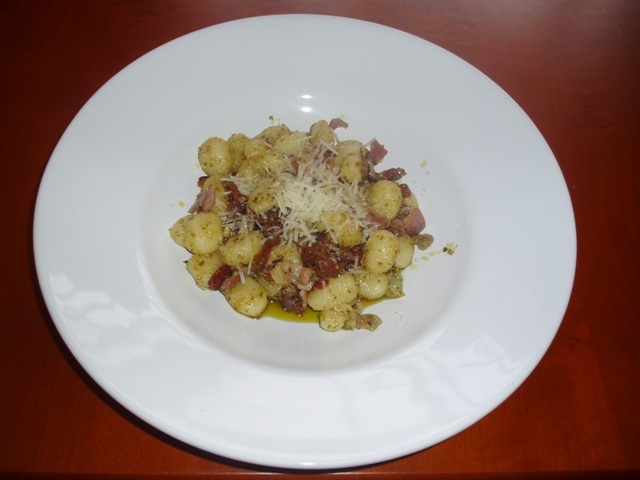 2. nočky s parmskou šunkou, sušenými rajčaty a bazalkovým pestem-neskutečná dobrota.