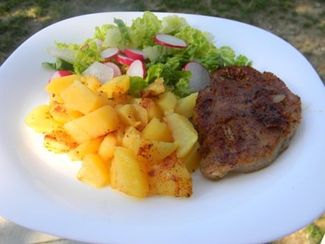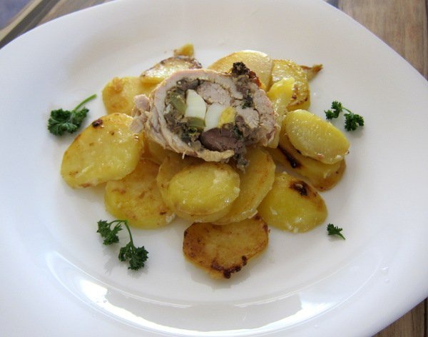 Kuřecí plněný závitek a brambory. Máte tip někdo jak péct brambory v troubě, aby byly co nejvíce křupavé prosím?