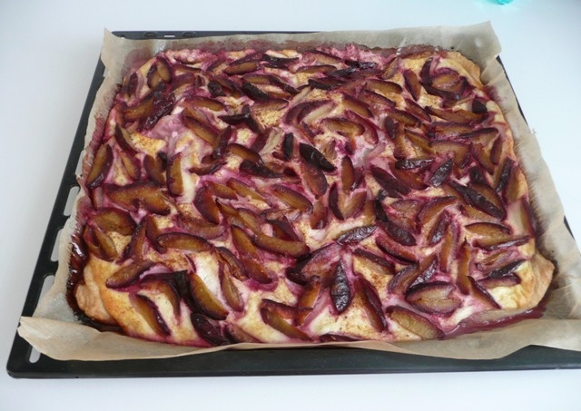 a na víkend vždy něco upeču, tentokrát koláč z listového těsta, tvarohu, šlehačky, navrh švestky a skořice a dobrý to. Hlavně hned po upečení.