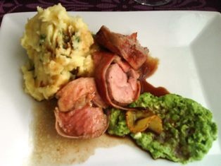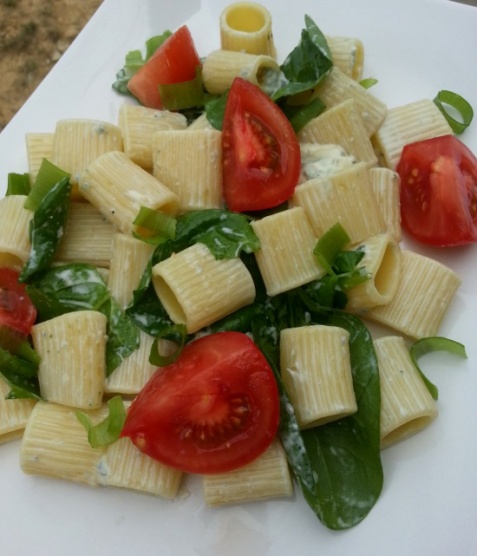 Dneska dvě jídla, pečená krkovička a zelí, rigatoni s krémem z nivy, čerstvým špenátem, atd. a jako poslední klasika se švestkami a meruňkami.