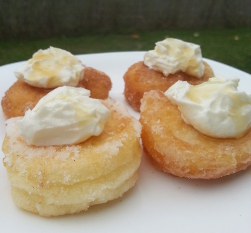Přidávám jednoduché, tvarohové koblížky (tvarohové těsto) s tvarohem, zalité javorovým sirupem.