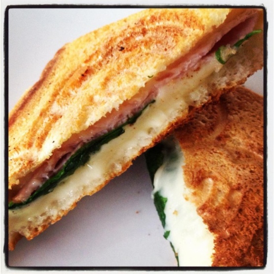 dneska jsem měla ke snídani toust se šunkou, goudou a rukolou a k večeři vinnou klobásu se šťouchačkama