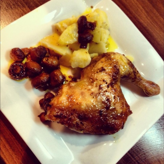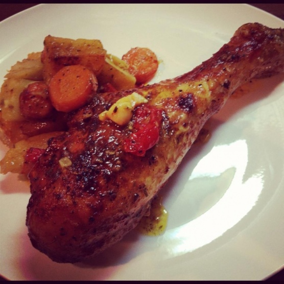 krt stehno peen s bramborami, esnekem, paprikou a mrkv