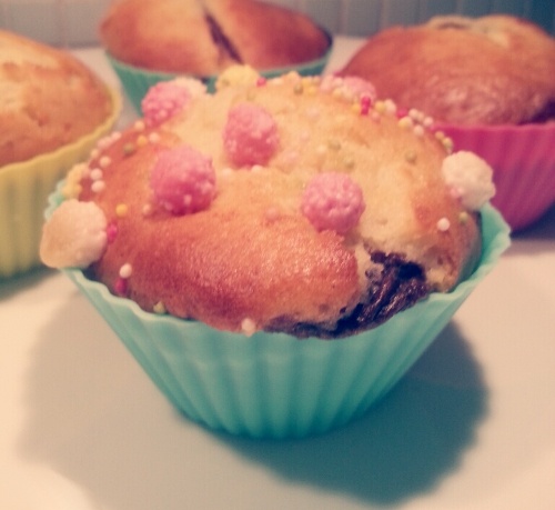 Přidávám víkendové "muffins", vanilkové a jako náplň jsem dala čoko puding