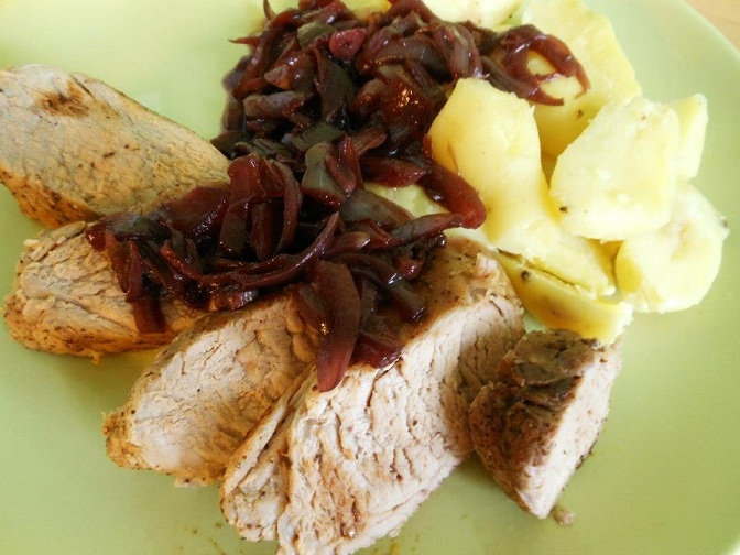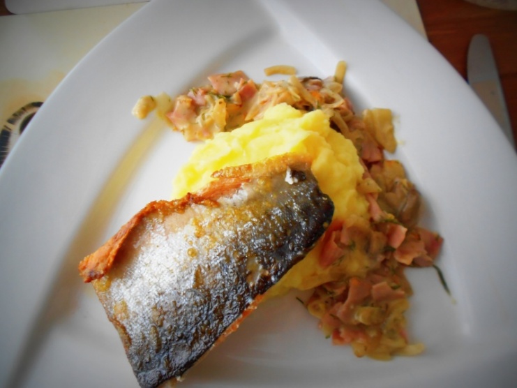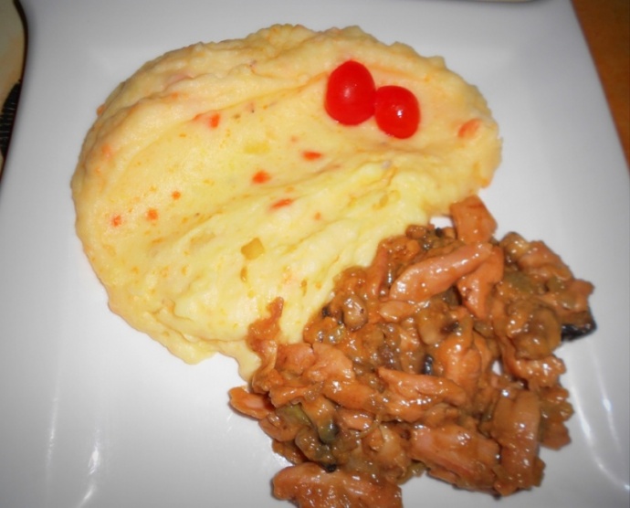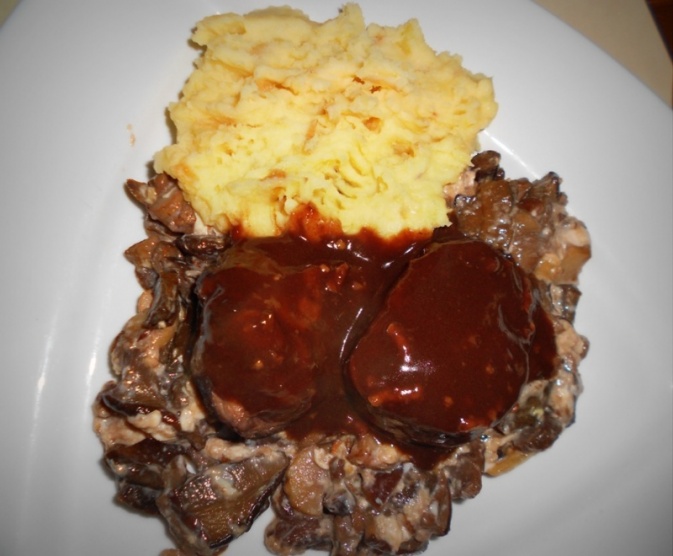 losos s bramborovou ka a sms unky,ampion,cibulky...