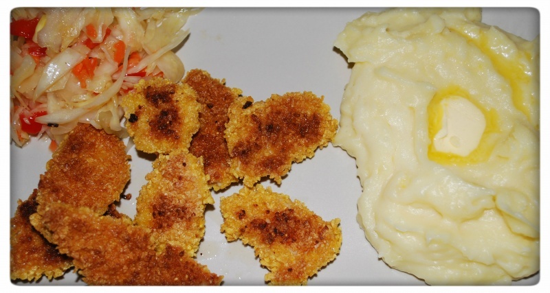 Kuec kousky obalovan v kukuin strouhance s bramborovou ka