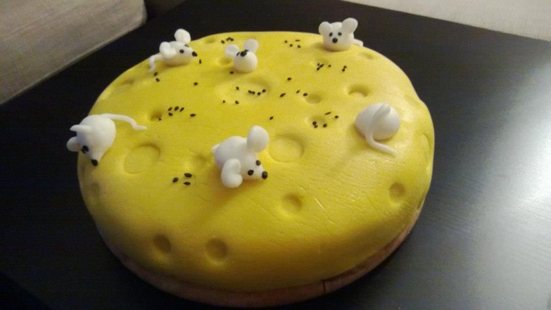a dort ve tvaru sýra... zatím se s těmi dorty trochu plácám, u tohohle mi hodně popraskal fondán, měla jsem ho asi moc tlustě rozválený...