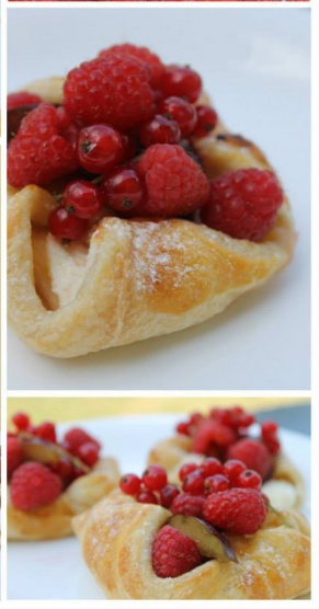 Přidávám jednu rychlovku, klasické šátečky z listového těsta + tvaroh + ovoce, zalité javorovým sirupem