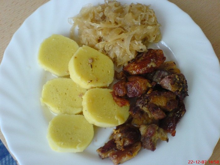 Jasný, už to chystám - domácí bramb. knedlík se zelím, mozzarellu s pečivem a domácí brambůrky