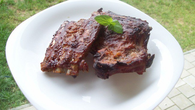 Přidávám vepřové, uzené žebírka naložené v medu a koření.