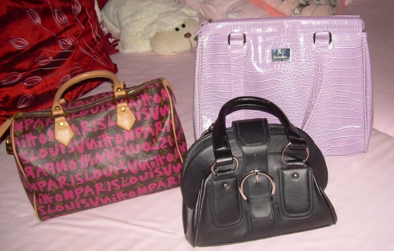 Malá černá je z Francie z Pimkie, první drahá kabelka, červená je má nejoblíbenější z jednoho malinkého butiku v Praze, žádná známá značka, fialová J a J Jennifer .. tak doufám, že se budou líbit