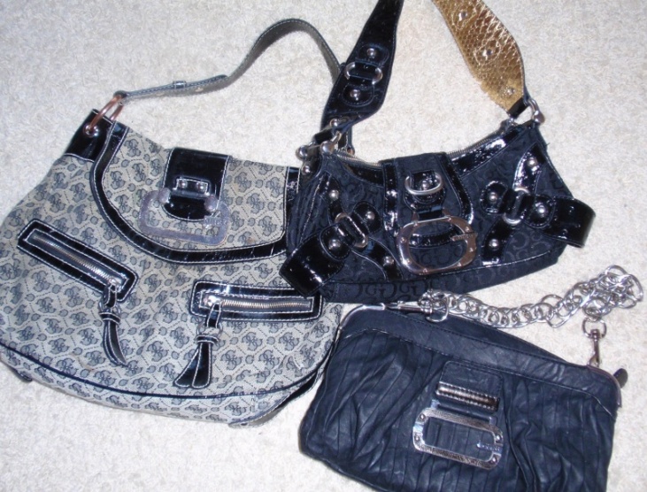 Tady jsou moje lásky, všechno Guess. Ta světle růžová je teď má nejoblíbenější na den, 2 malé černé nosím na večer, velkou černou už nenosím, ale připomíná mi hodně zážitků. A ta poslední černá mi přijde snad už dnes