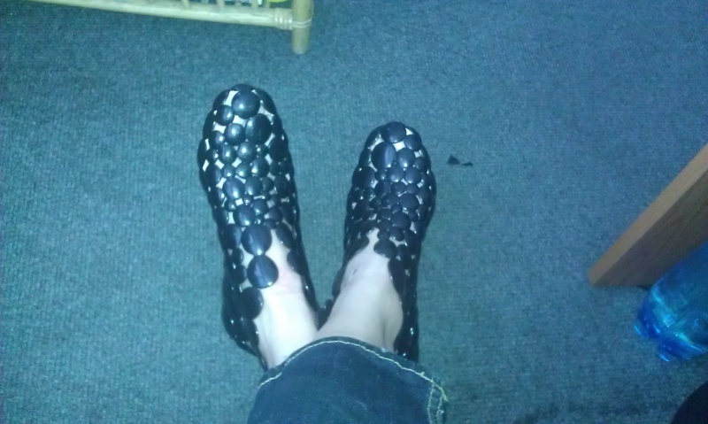 A už mi dorazily i ty durhé z Anglie, takže zasílám fotku Měly to být původně černé lakovky, ale zmátla mě fotka, takže jsme objednala tyhle a dorazily antracitky se třpytkami. Ale jsou hrozně pohodlné-sedí jak bačkůrky