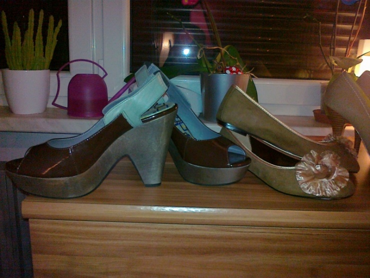 Mé troje favoritky první Mixer z 1200 na 400,- (z prvu dodřené paty, následně dolepeny podpatěnky a jsou jak papuče ), na klínku Sabrina, vypadají super na nožce, jsou i pohodlné a třetí La vita - krásné střevíčky ve stylu Sex ve městě, ale uvažuju že je prodám, ptz by slušely víc nějaké slečně s 50 kg já na ně mám moc silné nohy