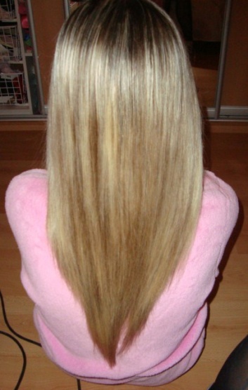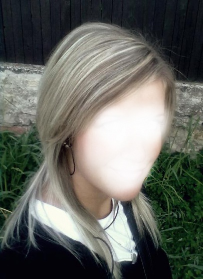 Tak teda taky přidám svoje vlasy. Je to starší fotka, teď mám vlasy tmavší a trochu delší. Skoro každý den fénuju a žehlím. :/