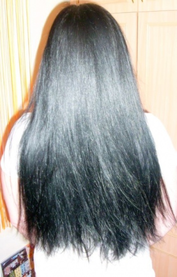 Jsou barvené přelivem od Castingu (míchám tmavý kaštan a ebenovou černou) - výsledná barva není úplně černá, i když to tak na fotkách vypadá.