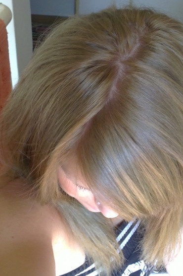 , takže je asi zbytečné ji tady nějak víc komentovat. Palette Deluxe byla celkem dobrá, akorát chytala trochu tmavě (tohle je fotka na sluníčku, na stínu nic moc), ale myslím, že ani moc neničila vlasy a vymývala se pomalu. A poslední, Wellaton, byl největší barevný prů.ser