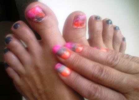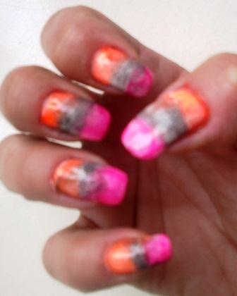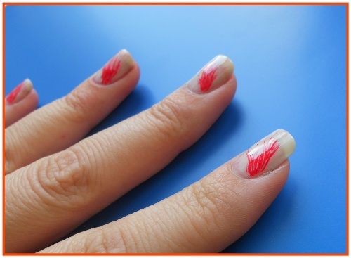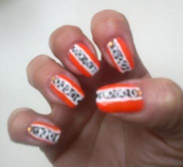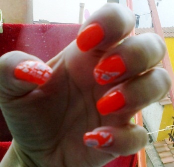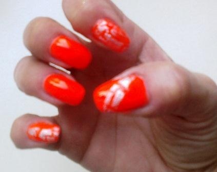 ...tak dneska jsem si po týdnu odlakovala ty modré třpytky... málem jsem u toho umřela, a mám oranž.neonky obyč. lak za dvacku z Pemi, v reálu nádherná svítivá oranž.barva jako sytý pomeranč, stříbrný grafiti Golden rose a nadlak Konad. Sice o nějakém zdobení se tady asi moc mluvit nedá, ale se mi teď nějak nechtělo