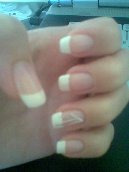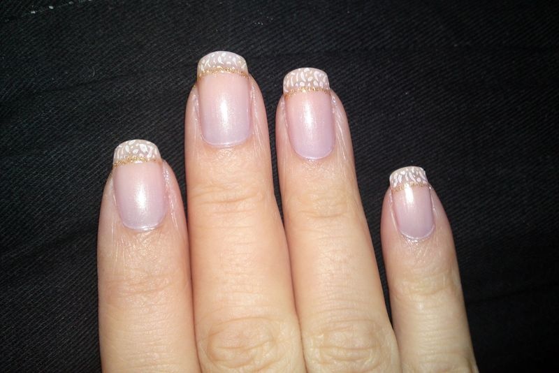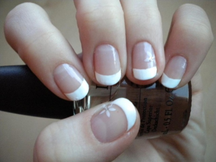 Podklad Sally Hansen, bílá na špičky Essence, top coat OPI.