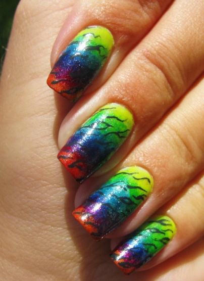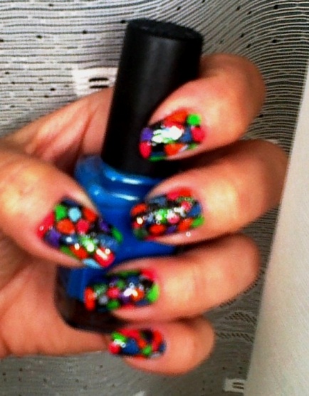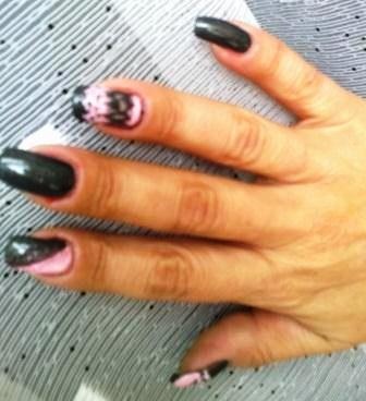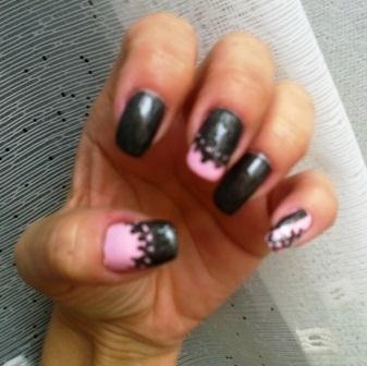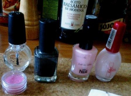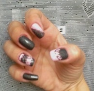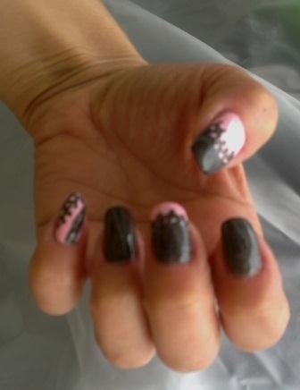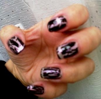 Nic moc zdobení - jenom Dermacol, jakoby mléčný lak a jak se hýbe rukou, hází neskutečné růžové odlesky, nádherný, přes to černý praskací od Essence. Na fotce nic moc, a není to vidět, ve skutečnosti je to pěkný