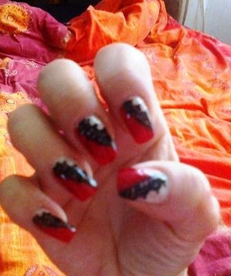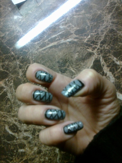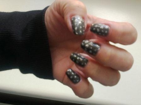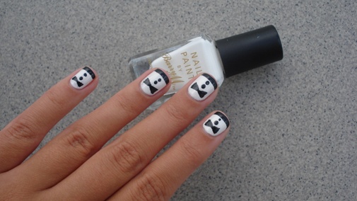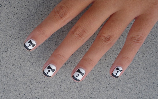 Můj první pokus o úžasné Tuxedo Nails. Zatím nejsou perfektní, ale rozhodně to pořádně vypiluju.