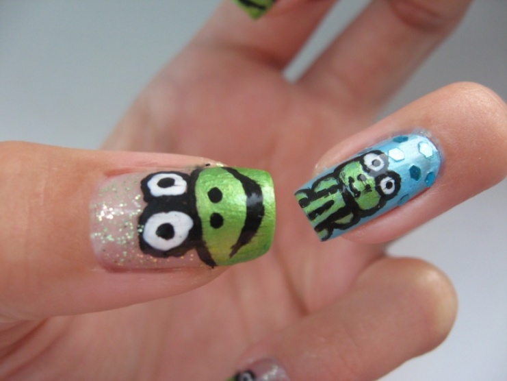 Tady má slečna báječné nehty. hezky to jde vidět, když si lepí řasy na konci