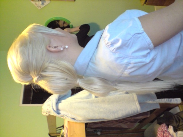 a tady kdyz jsem si je pridelala sama.Mam je z obchodu Crazy for hair z Anglie.Stály 35 liber,délka 30 cm.Ani na jedne fotce nemám nasazený celý set.Jejich na moje řídké vlasy moc.