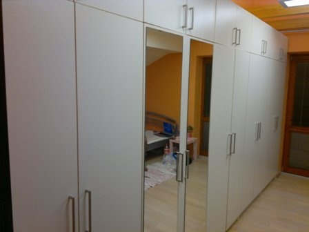 . A ještě poslední fotka šatních skříní zavřených. Foto skříně s doplňky a kabelkami jsem ani nefotila, stejně jako botník. Nechci Vás znechucovat svou leností uklízet