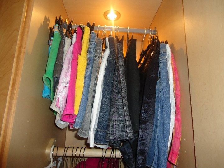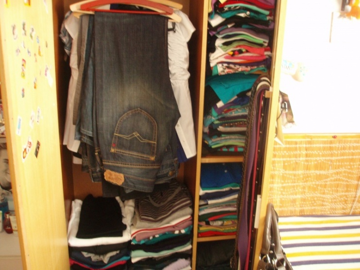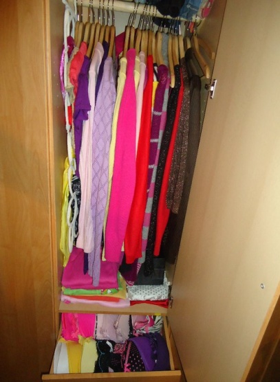 Můj současný podzimní/zimní šatník, letní věci mám uklizené v úložném prostoru v posteli, páč by se mi do skříně prostě už nevešly (už takhle jsou na některých ramínkách přítelovy košile)