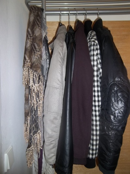 Druhé foto je půlka mého věšáku na aktuálně nošené bundy a šátky