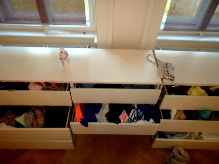 njn,,zlatý šatník,,v noci se někdy probouzím strachem že na mě skříň spadne..nezvládačka..všechno přecpané a ani nevim co vlastně mám..když otevřu dva šuplíky najednou tak se celá komoda převráti..